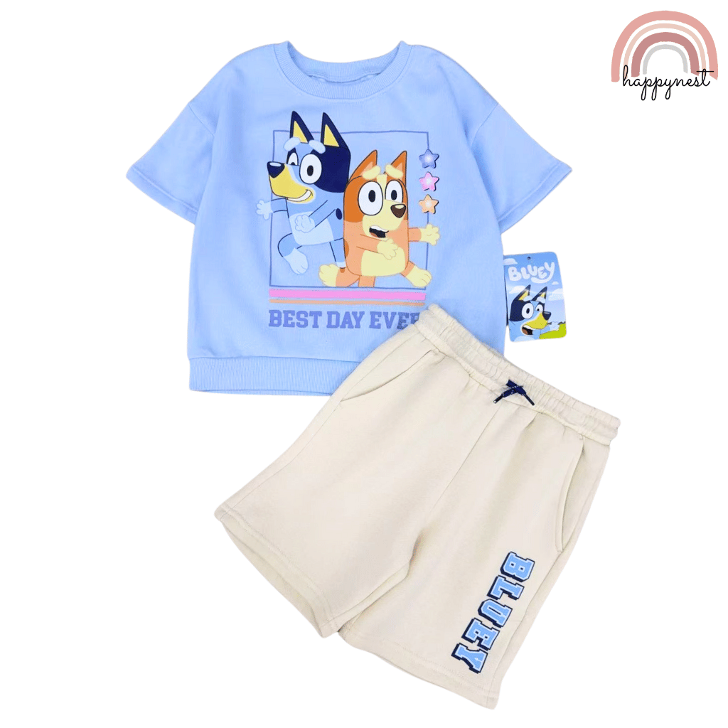 Bluey Terno Shirt & Shorts Set for Kids "Best Day Ever" Outfit 2-10Y AA446