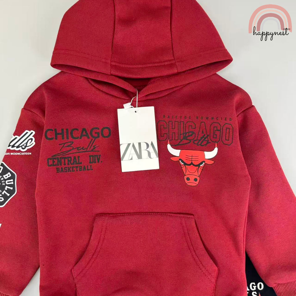 Chicago Bulls Hoodie Terno Set Kids Sweatshirt Jogger Pants Red 2-8Y SS651