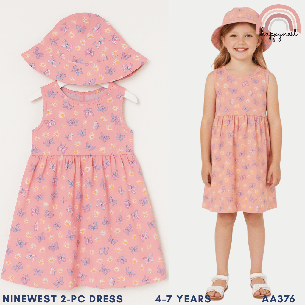 Cute Butterfly Print Dress and Hat Terno for Little Girls 4-7 Years AA376