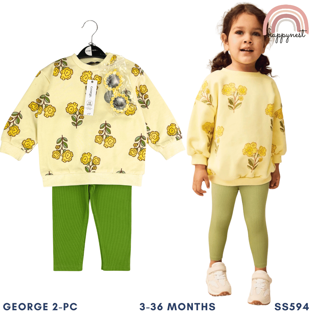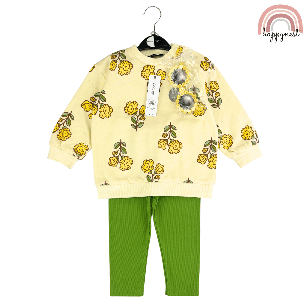GEORGE Sunflower Baby Toddler Girls 2PC Set Sweatshirt Leggings Pambahay 3M-36M SS594