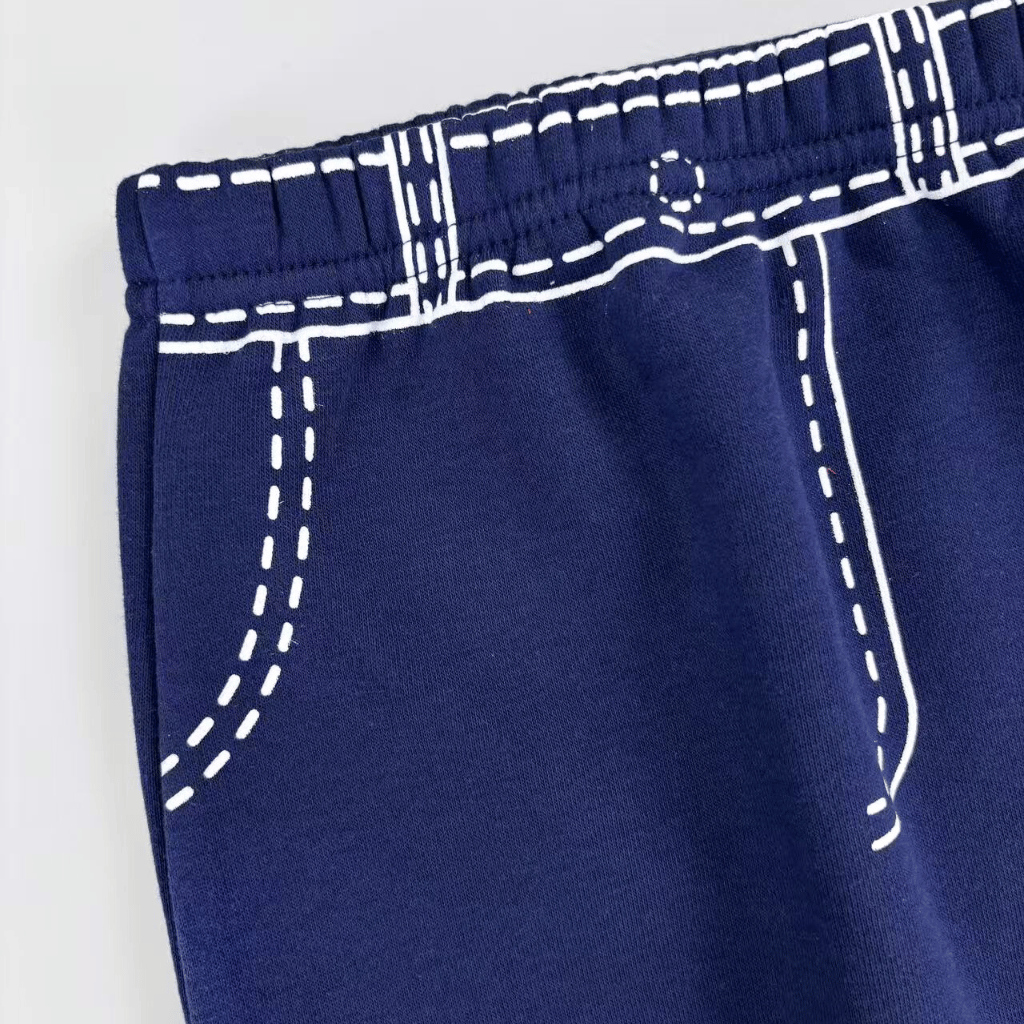 Includes matching Dark Blue/Navy Pants with stylish white stitching details that resemble denim or fashion trousers.