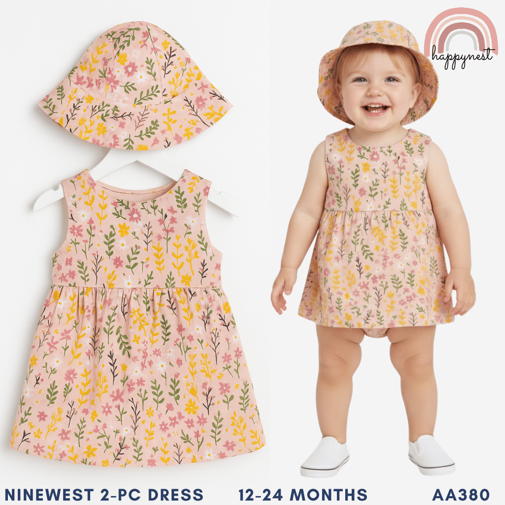 Pink Meadow Floral Dress & Hat Set for Girls 12-24M AA380