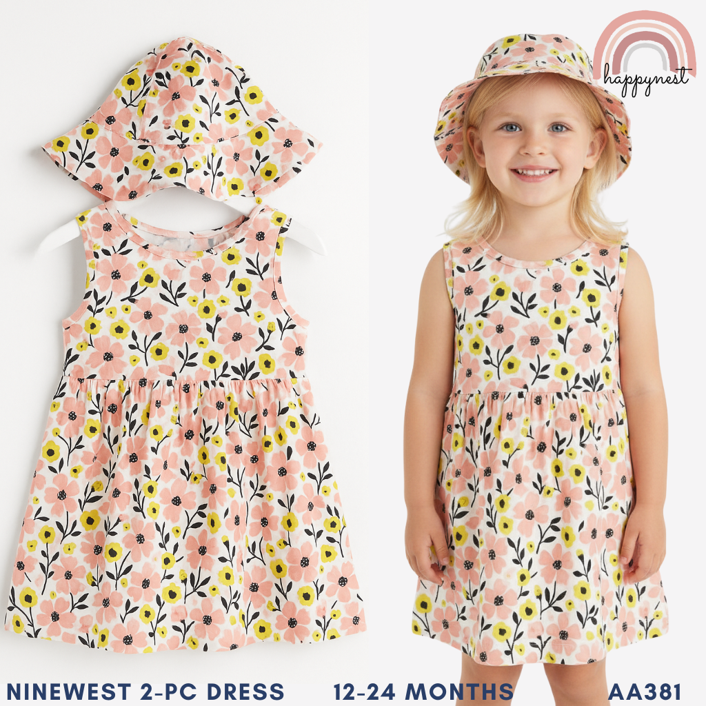 Pink & Yellow Floral Dress & Hat Set for Girls 12-24M AA381